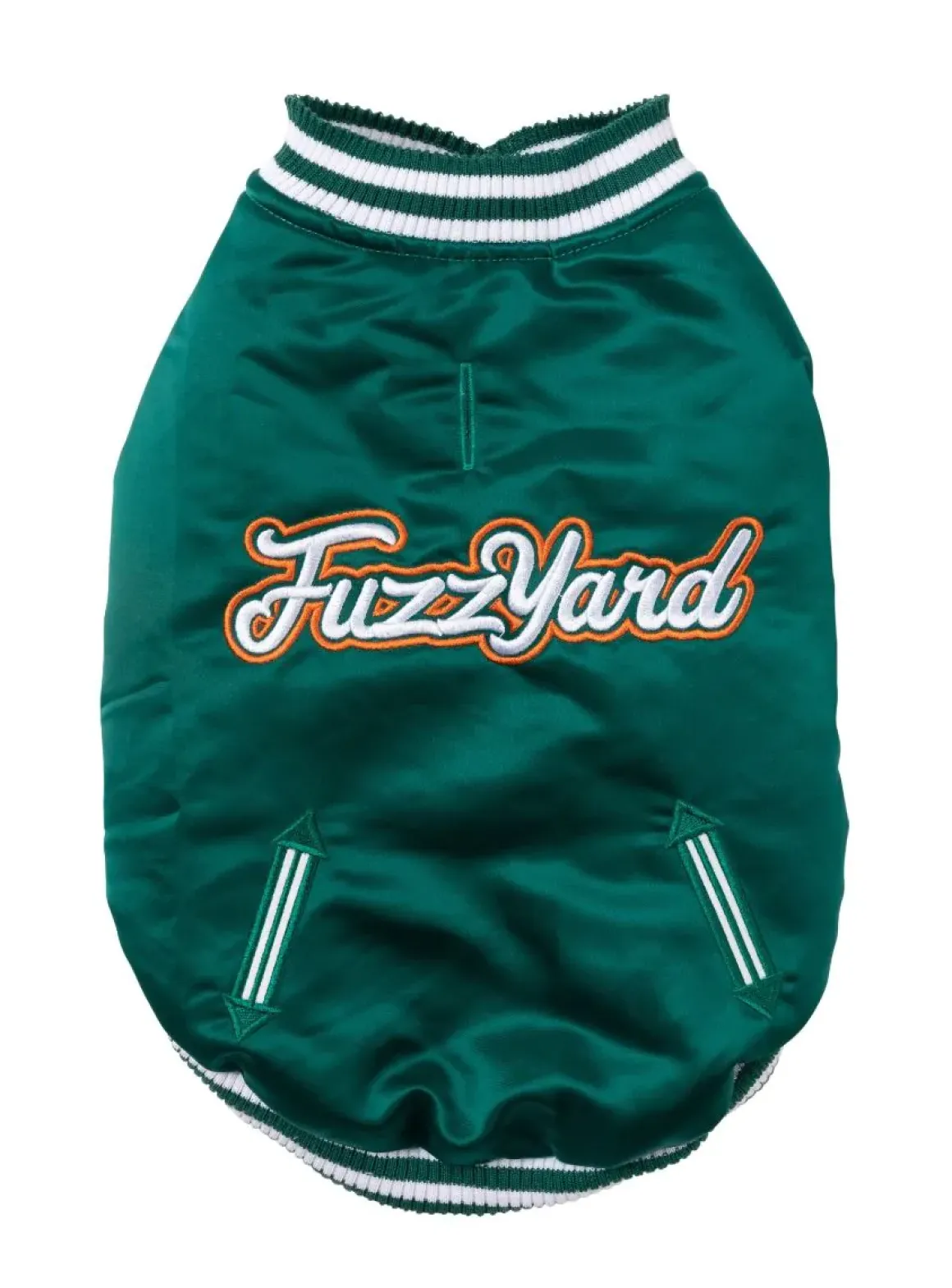 It features a FuzzYard embroidered patch on the back and faux pockets to keep your dog looking stylin’.