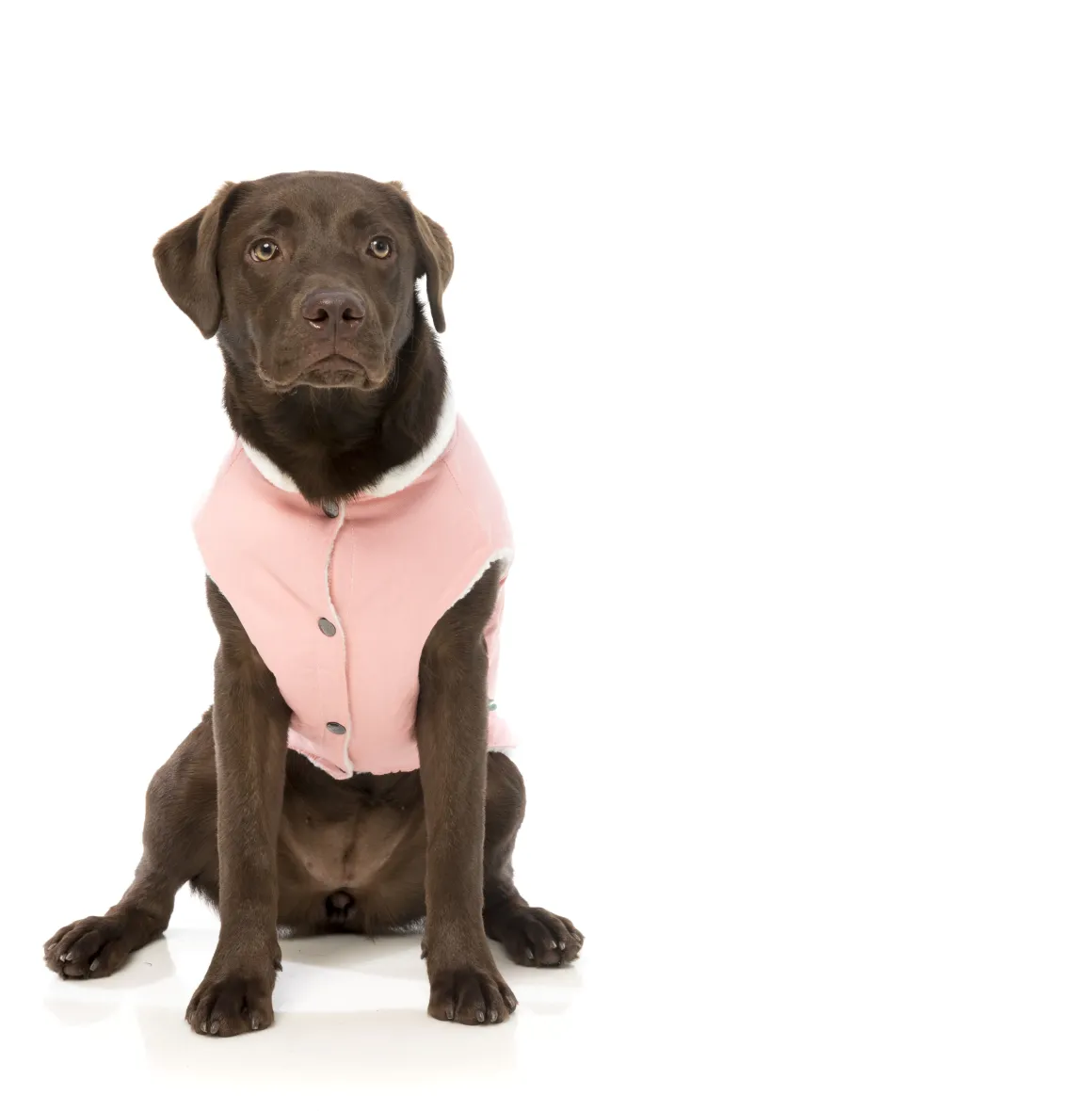 Maple the Chocolate Lab is wearing a size 7