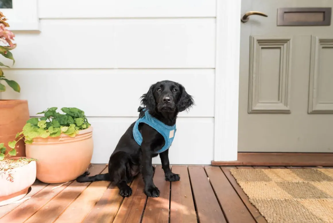 Simply allow your dog to step in, pull up and secure with the matte black buckle.