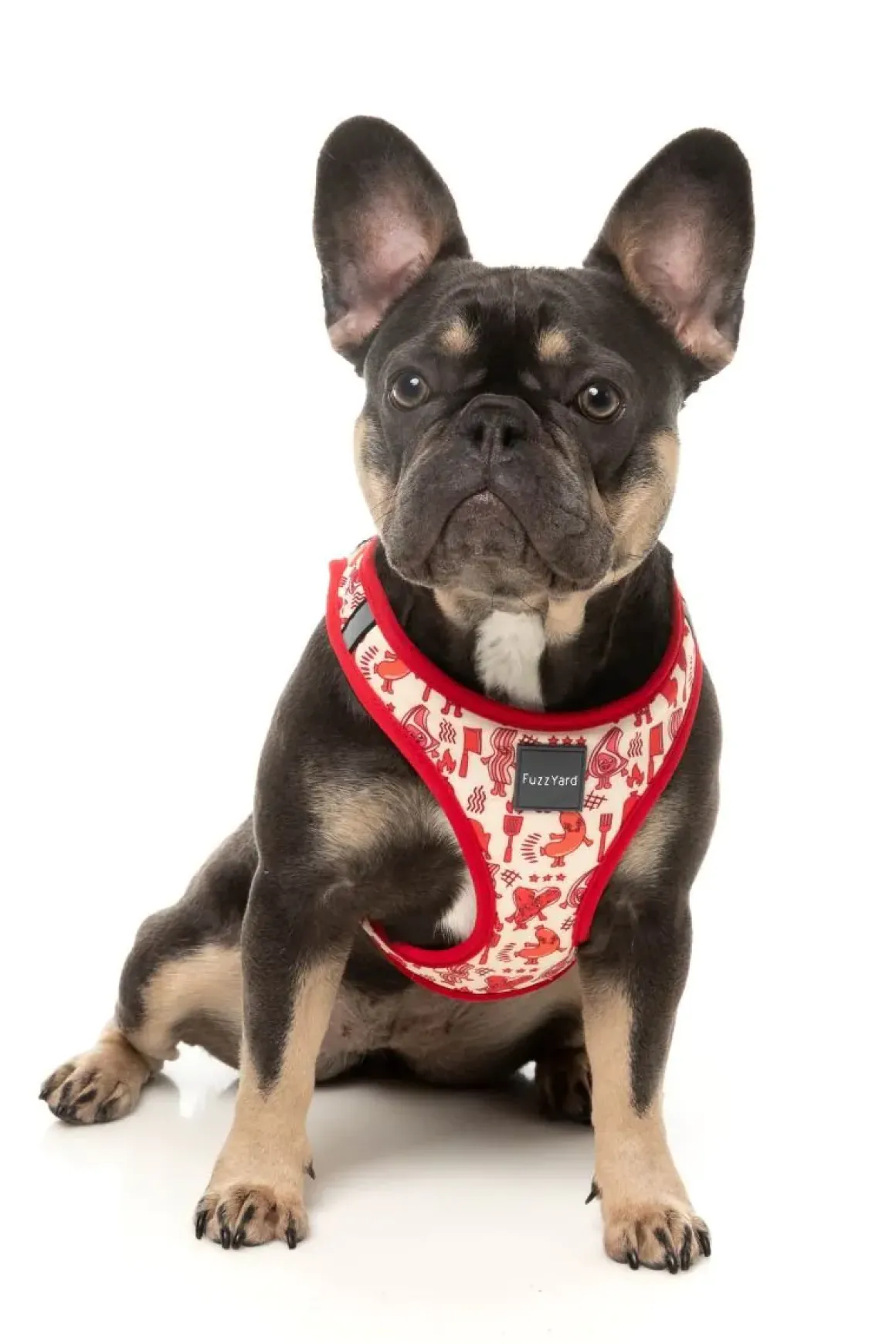 FuzzYard step in dog harnesses are the best solution for dogs who don’t like things being put over their head….or have a big head ;). They are lightweight super comfortable and, best of all, easy to fit! Simply unclip the buckle, undo the velcro and let your dog ‘step in’ and you’re good to go!