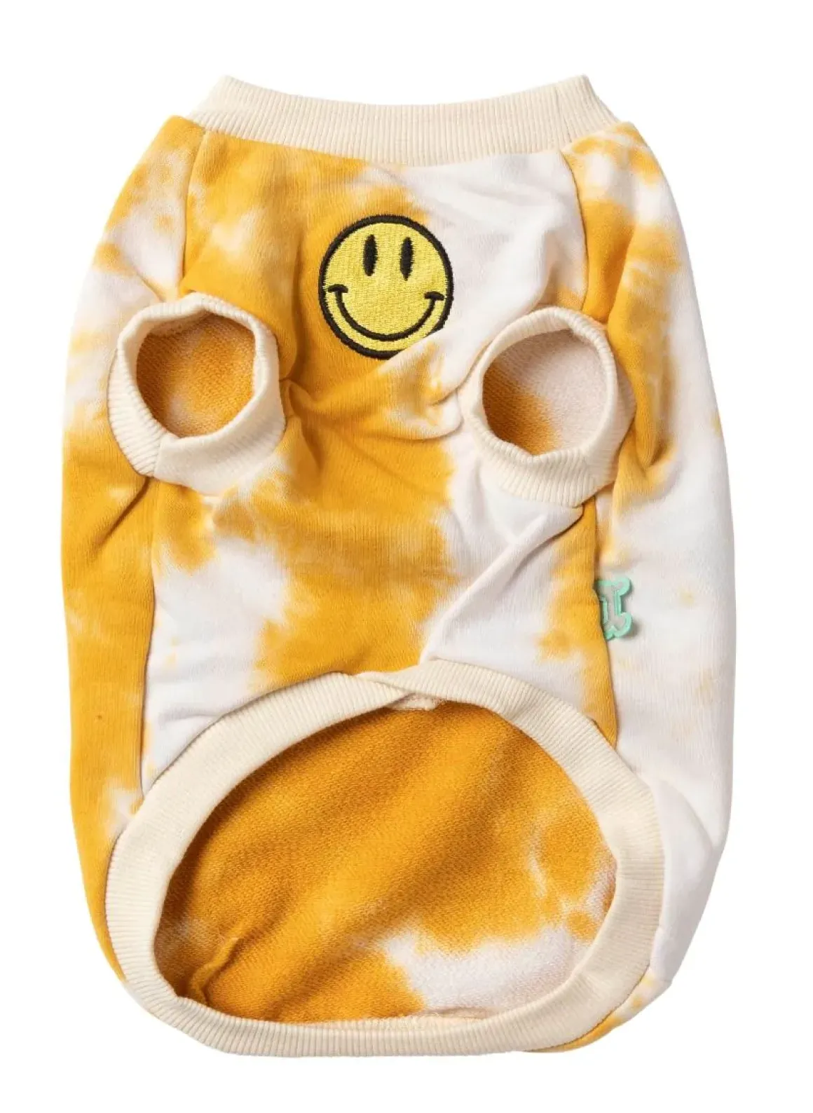 These fun and vibrant sweaters are made using tie-dye treatment in 100% cotton fabric, ribbing on the neck, cap sleeve, and bottom hem for better fitting and added comfort. Super cute smiley face screen printed on the chest and back with FuzzYard logo and harness hole to easily connect the lead to collar.