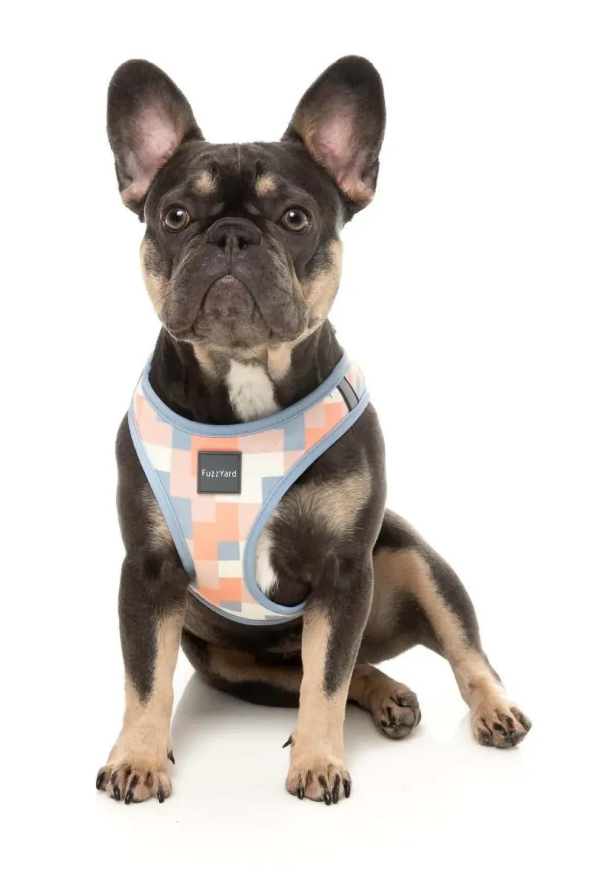 FuzzYard step in dog harnesses are the best solution for dogs who don’t like things being put over their head….or have a big head ;). They are lightweight super comfortable and, best of all, easy to fit! Simply unclip the buckle, undo the velcro and let your dog ‘step in’ and you’re good to go!